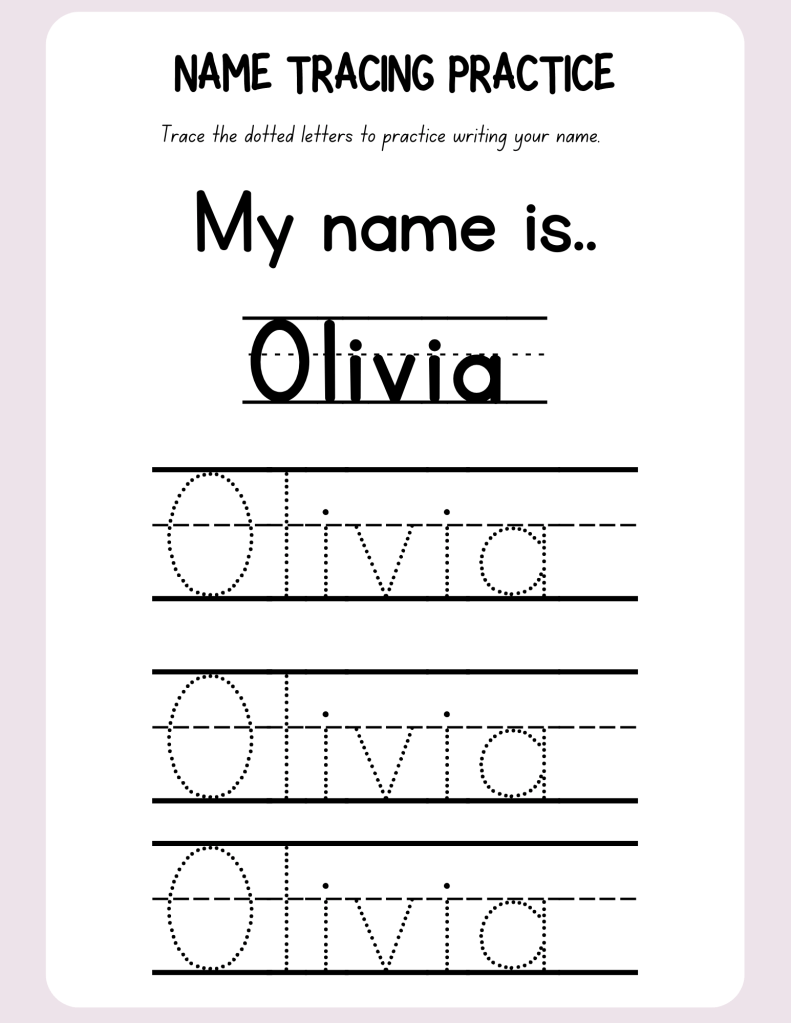 Learning the English alphabet is a crucial step for children and holds significant importance. By the end of their first school year, one-third of 6-year-olds struggle with reading. After two years, 14% still face difficulties and may lag behind their peers. Our morning routine begins with breakfast and songs, followed by a focus on our ABCs. I’m prioritizing letters A and B, dedicating the entire month to these letters until she is prepared to progress. While she already recognizes her name, I aim for her to identify it by its letters, ultimately guiding her toward writing. Recognizing their name fosters early literacy, as a child’s name is often the first word they learn and connect with on a deep level. I’ve included a few practice pages I created for her as examples of some of the activities we do. Every other day is the same outline – the idea is to make it familiar and more importantly engaging!